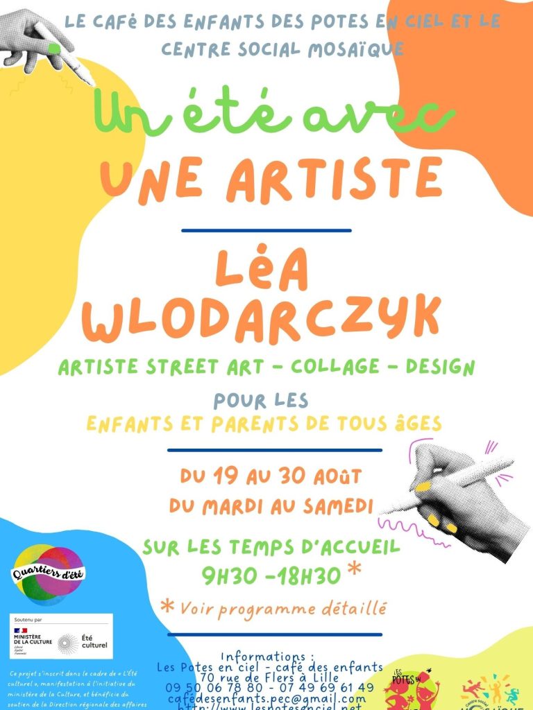 Cet été, c'est la culture qui nous fait voyager avec la résidence d'artiste de Léa Wlodarczyk. Elle nous proposera de s'élancer joyeusement pour réaliser un parcours artististique dans le quartier de Lille Fives autour de la pratique du collage.